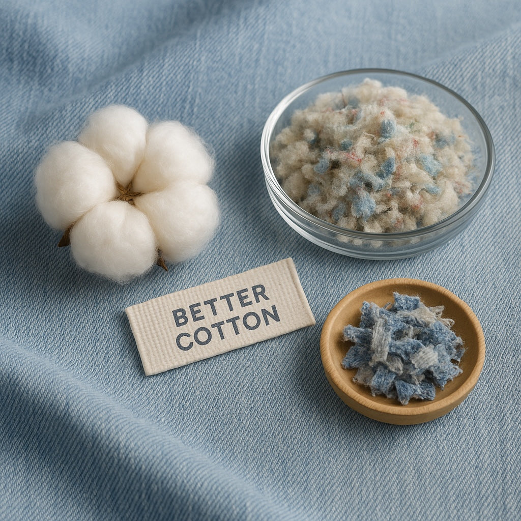 We prioritize denim crafted using Better Cotton Initiative (BCI) cotton and organic cotton, often blended with recycled materials and post-consumer waste (PCW) or pre-consumer waste (PIW) to conserve resources.